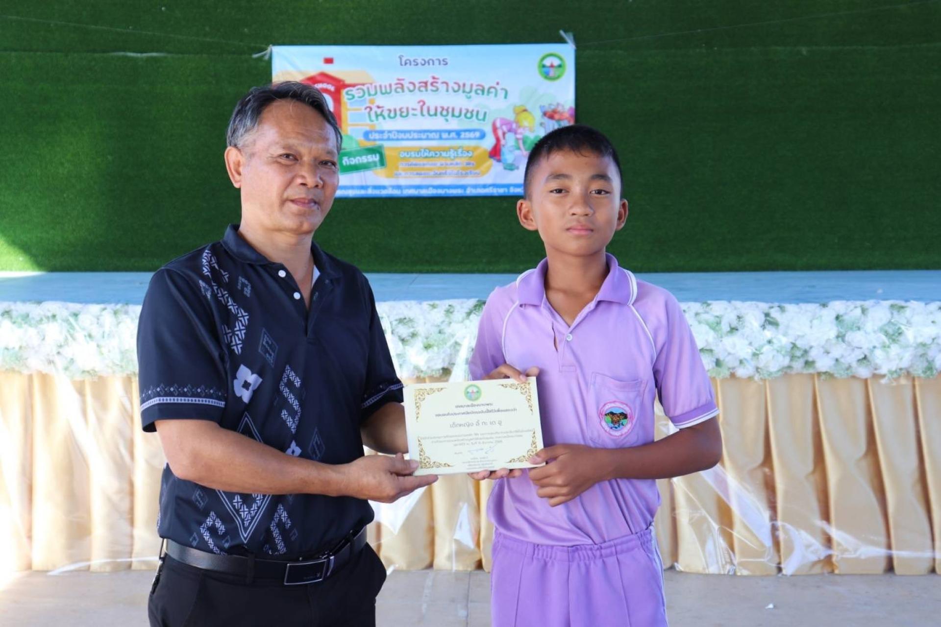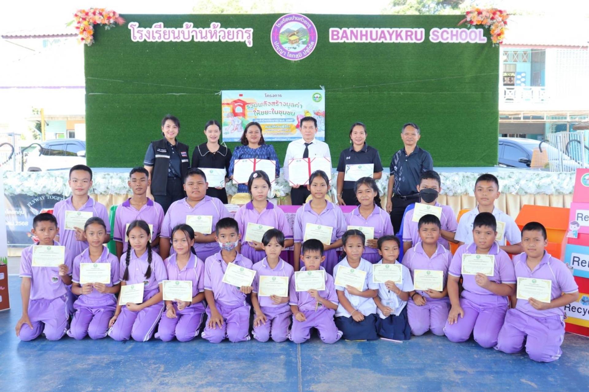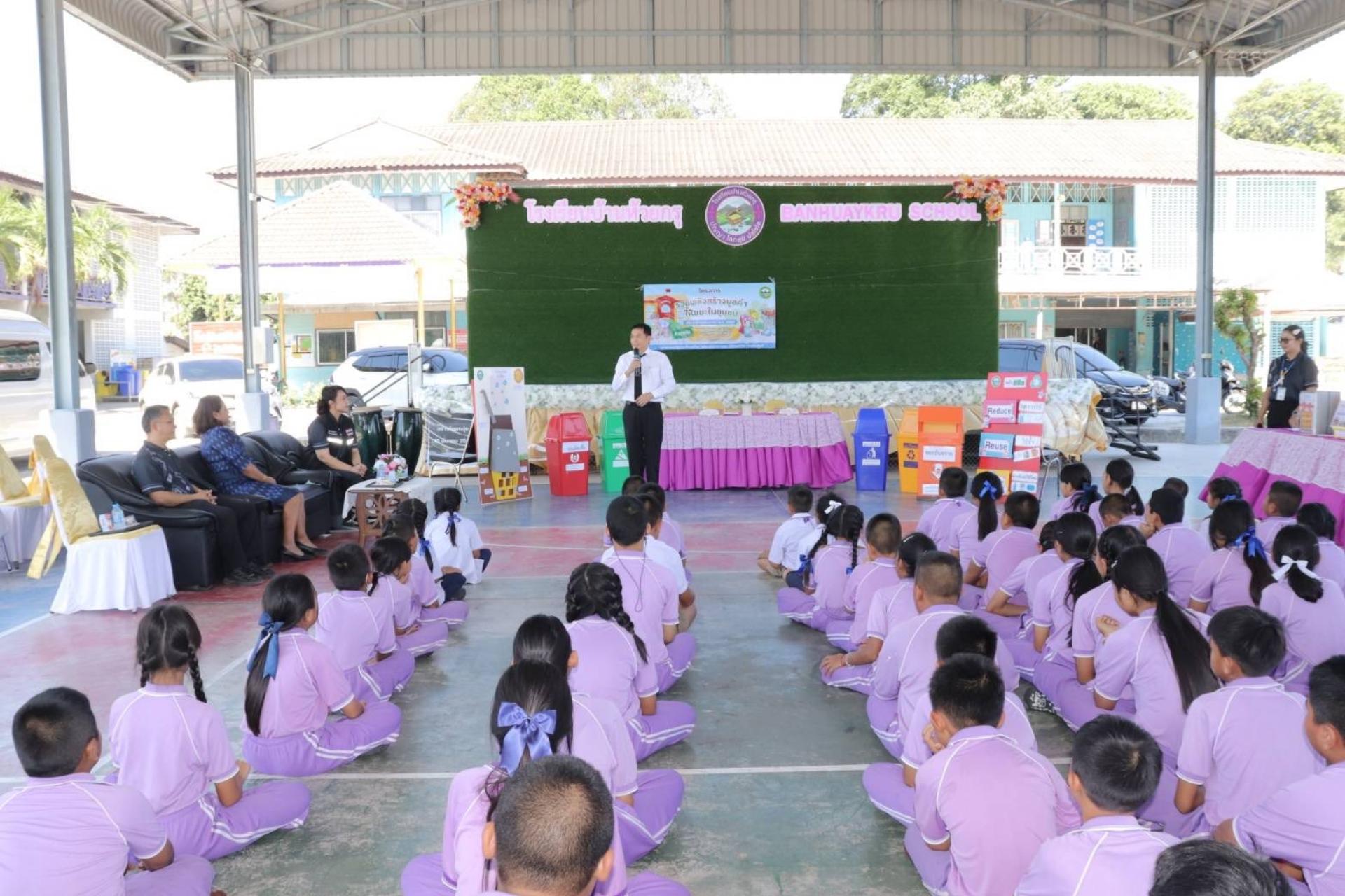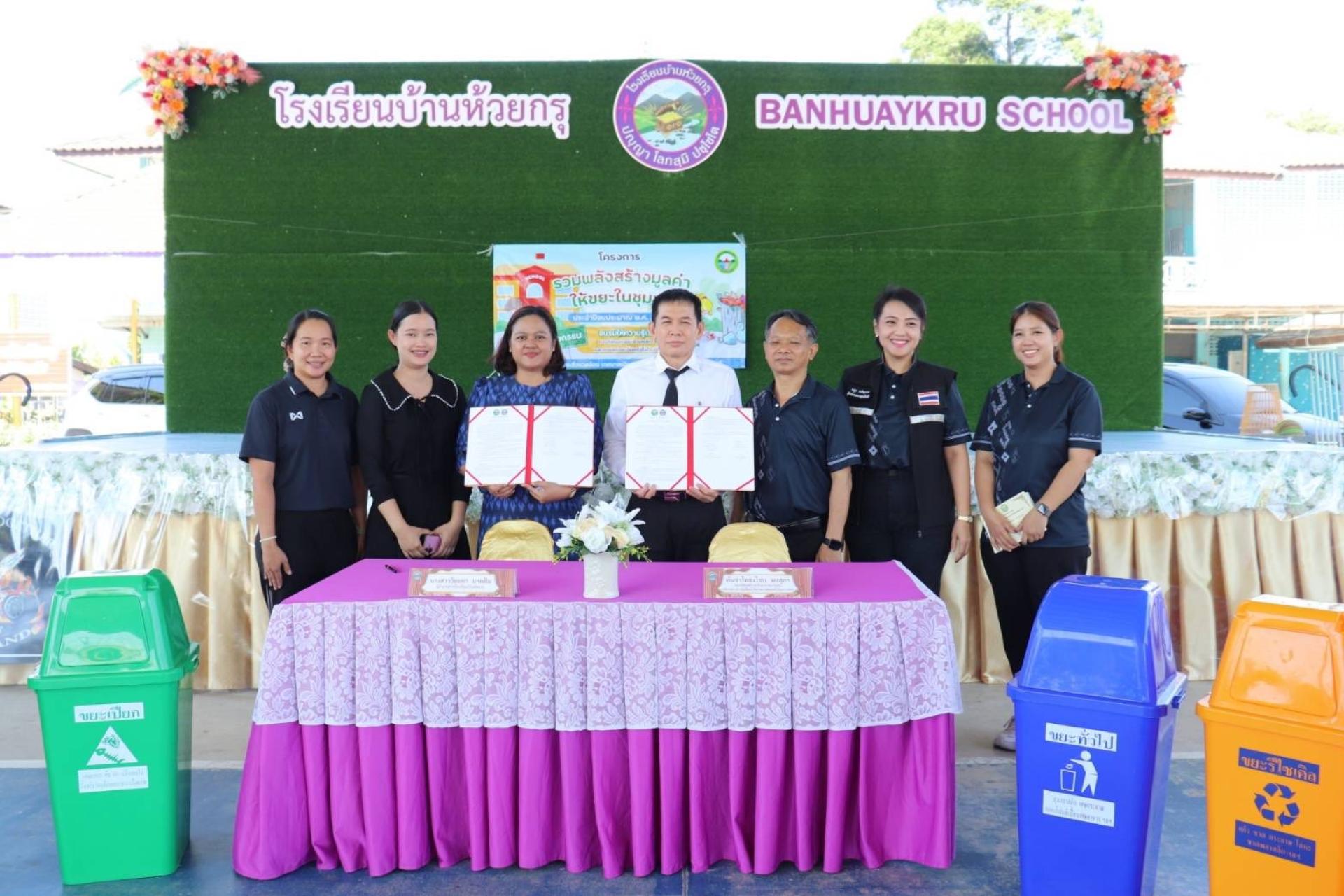 วันที่ 16 ธันวาคม 2568 เวลา 13.00 - 16.00 น. เทศบาลเมืองบางพระ นำโดย พันจ่าโท ธงไชย พงสุภา ตำแหน่ง รองปลัดเทศบาล รักษาราชการแทน ปลัดเทศบาล ปฏิบัติหน้าที่ นายกเทศมนตรีเมืองบางพระ ร่วมลงนามจัดทำบันทึกข้อตกลงความร่วมมือ (MOU) กับโรงเรียนบ้านห้วยกรุ โดยนางสาววิยะดา นาคสิน ผู้อำนวยการโรงเรียนบ้านห้วยกรุ ร่วมขับเคลื่อนการจัดการขยะให้มีประสิทธิภาพและเกิดความยั่งยืน ภายใต้โครงการ "รวมพลังสร้างมูลค่าให้ขยะในชุมชน" ประจำปีงบประมาณ 2569 ณ โรงเรียนบ้านห้วยกรุ ในการดําเนินโครงการครั้งนี้ มีกิจกรรม อบรม ให้ความรู้ เรื่องการคัดแยกขยะ กับนักเรียนและคณะครู จำนวน 70 คน สร้างความรู้ความเข้าใจในการคัดแยกและการจัดการขยะ ตามแนวทาง 3Rs โดยเฉพาะขยะอินทรีย์ มีการจัดทําจุดการเรียนรู้สาธิตการทําถังขยะเปียกลดโลกร้อน เป็นการลดปริมาณขยะอินทรีย์ตั้งแต่ต้นทาง และช่วยลดการปล่อยก๊าซเรือนกระจก