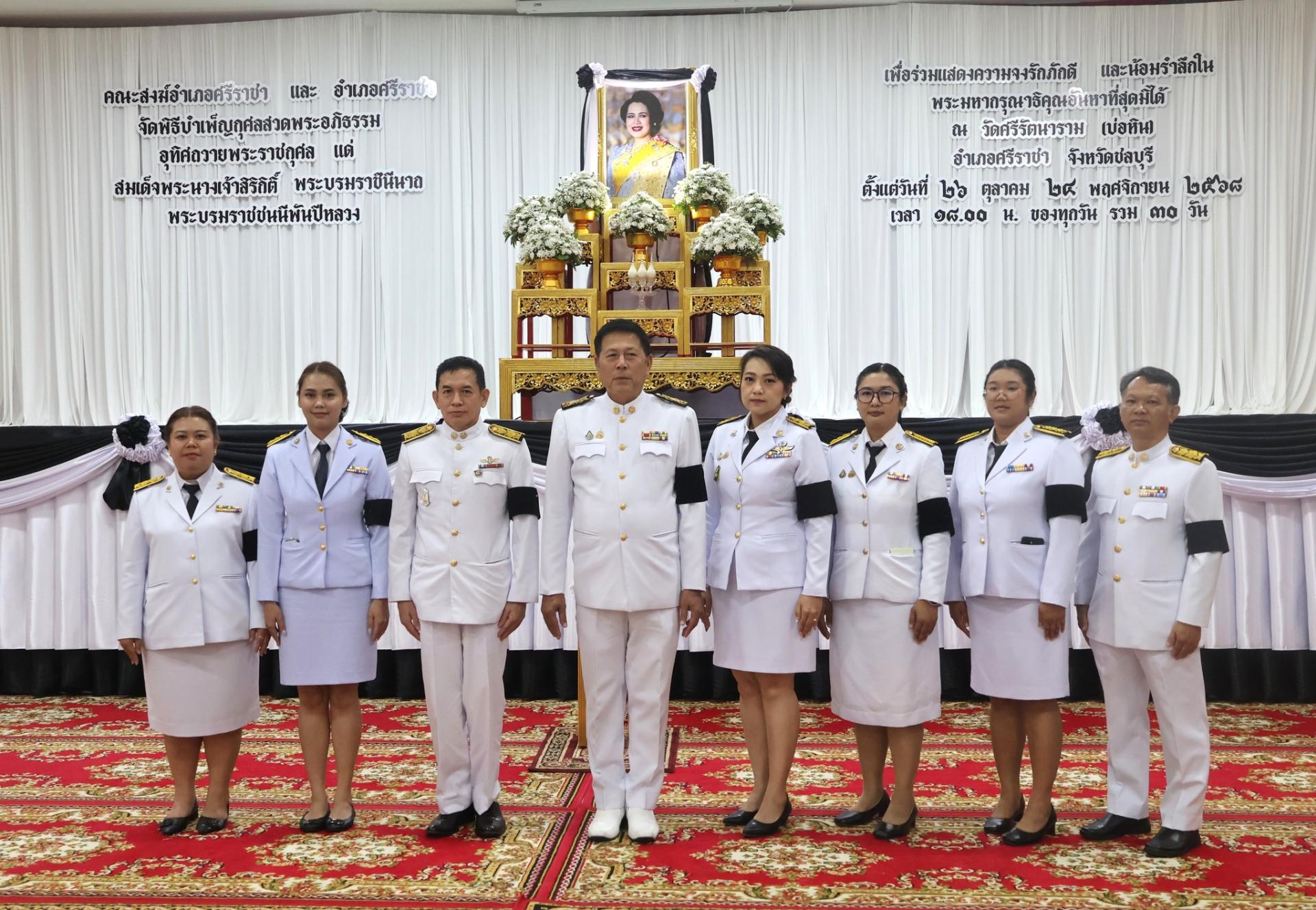 วันที่ 1 พฤศจิกายน 2568 เวลา 18.00 น. องค์การบริหารส่วนตำบลบางพระนำโดย นายสมศักดิ์ เกตุวัตถา นายก อบต. บางพระ ร่วมกับ ชมรมกำนันผู้ใหญ่บ้านตำบลบางพระ เป็นเจ้าภาพจัดพิธีบำเพ็ญกุศลสวดพระอภิธรรมอุทิศถวายพระราชกุศล แด่สมด็จพระนางเจ้าสิริกิต์ พระบรมราชินีนาถ พระบรมราชชนนีพันปีหลวง เพื่อร่วมแสดงความจงรักภักดี และน้อมรำลึกในพระมหากรุณาธิคุณอันหาที่สุดมิได้ ณ วัดศรีรัตนาราม (บ่อหิน) อำเภอศรีราชา จังหวัดชลบุรี
